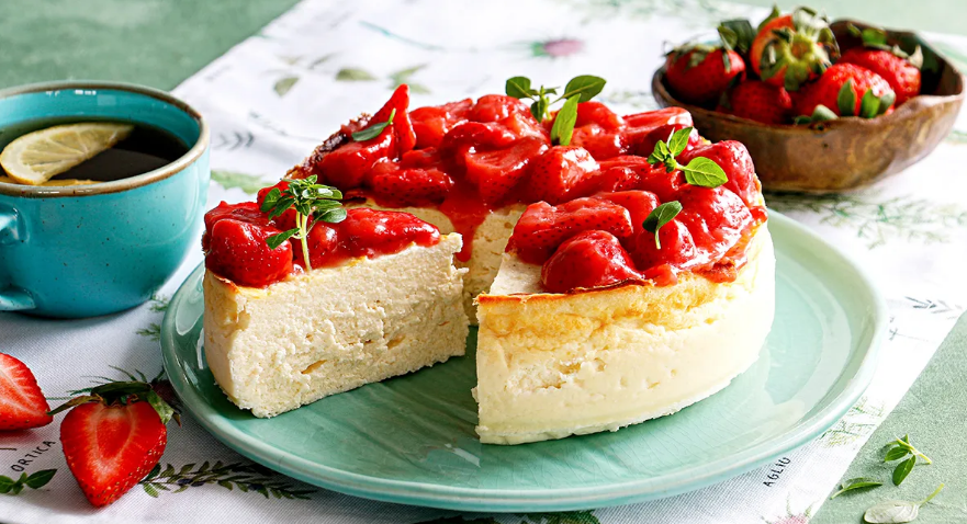 Наш творожный чизкейк с клубникой многие сочтут просто запеканкой, ведь в нем нет основы, как бывает в случае с этим популярным десертом. Но такое недоразумение вполне можно понять и простить: оно компенсируется невероятно нежной текстурой лакомства и, конечно, его изысканным вкусом. Ну а если вы категорически возражаете, что это чизкейк, называйте блюдо запеканкой, только имейте в виду, что она — совершенно особенная, не похожая на традиционную. Рецепт блюда не отличается сложностью, а вот о качестве ингредиентов стоит позаботиться. Творог должен быть натуральным, жирным (в идеале пластовым), а клубника для соуса — сезонной, то есть, сладкой и ароматной. Тогда чизкейк получится настолько вкусным, что споры о том, как его правильно называть, просто не возникнут. ИНГРЕДИЕНТЫ НА 6 ПОРЦИЙ Шаг 1 Духовку нагрейте до 160°C. Подготовьте все ингредиенты чизкейка. Творог протрите через мелкое металлическое сито в миску, чтобы он приобрел максимально однородную консистенцию. Шаг 2 Добавьте к тво
