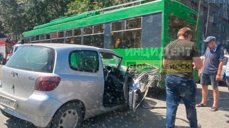 В Новосибирске спасли зажатую в машине после столкновения с троллейбусом женщину