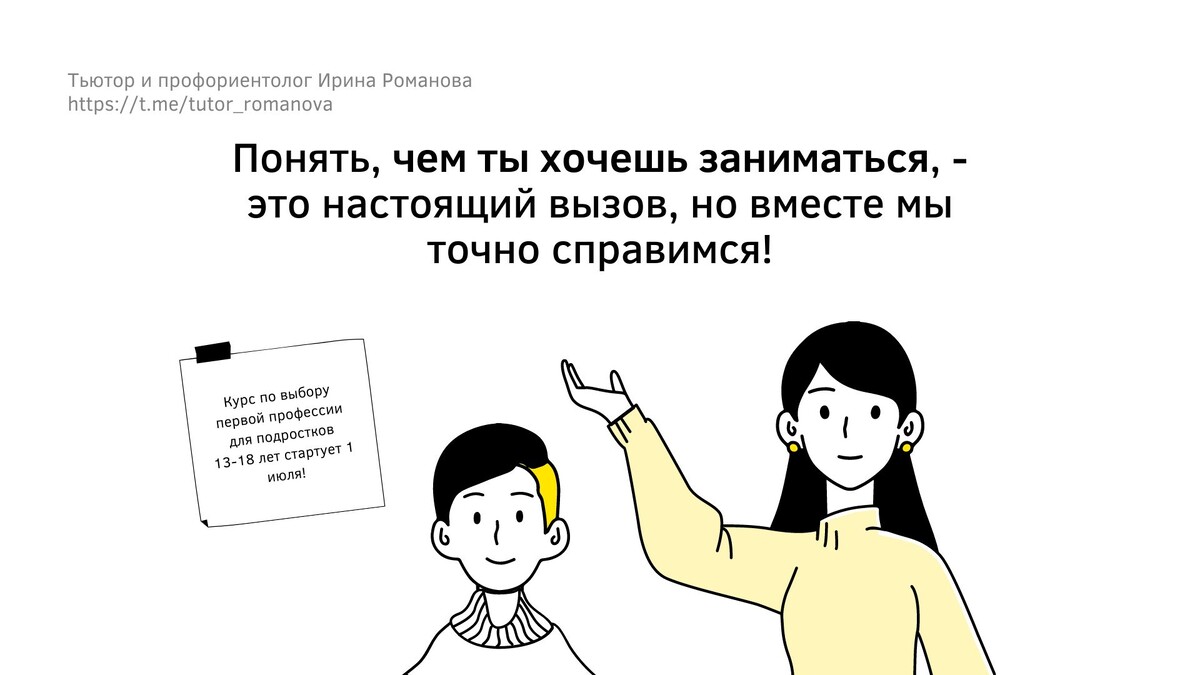 Понять, чем ты хочешь заниматься, - это настоящий вызов, но вместе мы точно справимся!