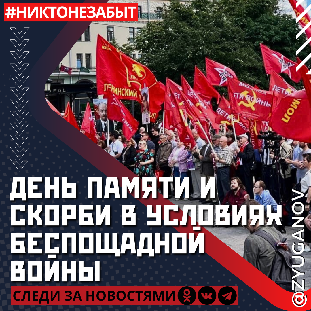 Мы отмечаем День памяти и скорби в условиях беспощадной войны, которую нам объявили англосаксы. Гибридная война против России ведётся последователями тех, кто вчера маршировал под флагом Гитлера, пытаясь захватить Москву и Сталинград, но был разбит Красной Армией. Сегодня все должны осознать, что натовская военная угроза стоит за спиной у каждого.