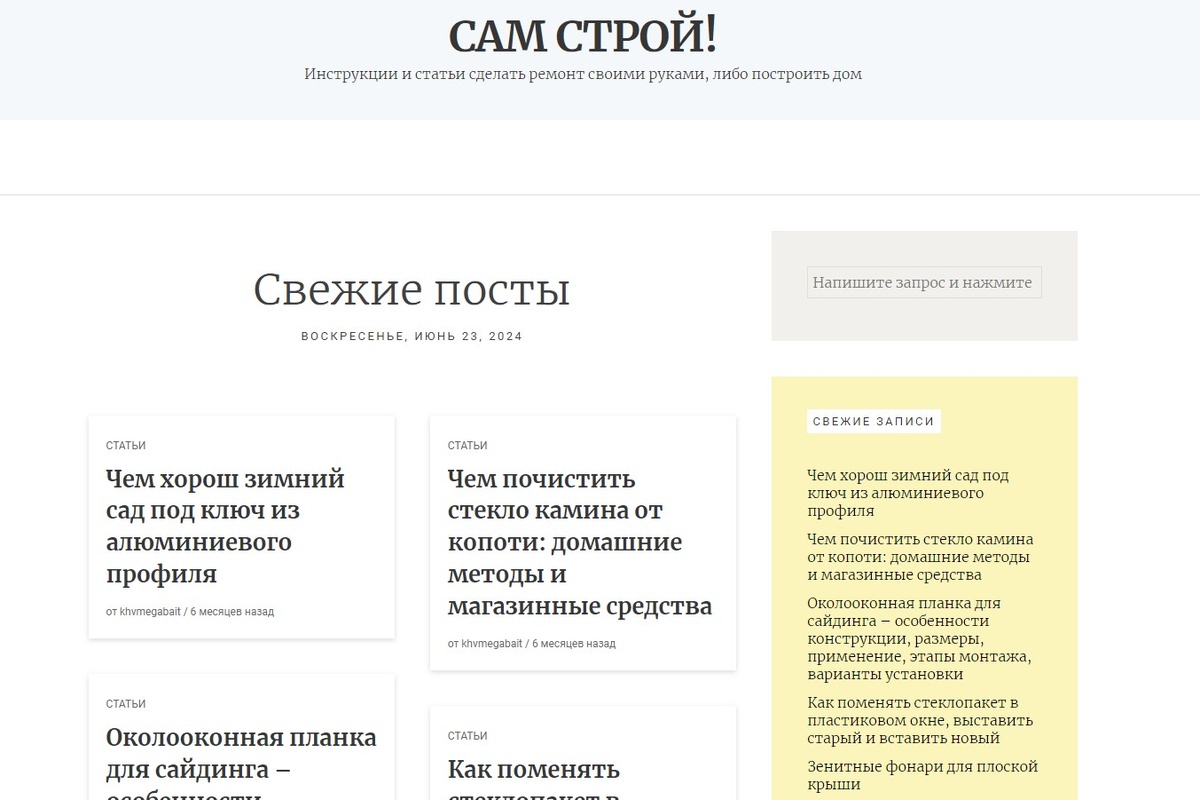 САМ СТРОЙ! Инструкции и статьи сделать ремонт своими руками, либо построить дом