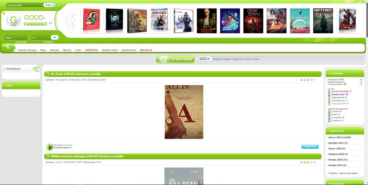 Good-Torrent.ru: Ваш Надежный Источник для Скачивания Игр, Фильмов и Музыки Добро пожаловать на Good-Torrent.ru – торрент-трекер нового поколения, где вы можете скачать игры, фильмы и музыку высокого качества через торрент клиент. Мы предлагаем широкий выбор контента с быстрыми и стабильными скоростями скачивания. Богатая Коллекция Контента Наши пользователи имеют доступ к огромной библиотеке торрентов, включающей последние новинки и классические произведения. Ищете последнюю AAA-игру или культовый фильм? На Good-Torrent.ru вы найдете это без труда. Простота и Удобство Good-Torrent.ru отличается простым и интуитивно понятным интерфейсом. Наша удобная система поиска и категорий позволяет быстро находить интересующий вас контент. Высокая Скорость Скачивания Благодаря мощной сетевой инфраструктуре, Good-Torrent.ru обеспечивает высокие скорости скачивания, что позволяет вам получать желаемый контент в кратчайшие сроки. Безопасность и Конфиденциальность Мы придаем большое значение безопасно