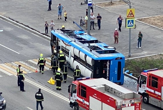 По словам очевидцев, звук падения электробуса был настолько громким, что им показалось, что рухнул дом. К месту происшествия прибыли три кареты скорой помощи. На кадрах, снятых очевидцами, видно, что синий электробус лежит на боку, частично собой закрыв пешеходный переход. Вокруг видны осколки стекла, вероятно, выбитых окон транспортного средства.