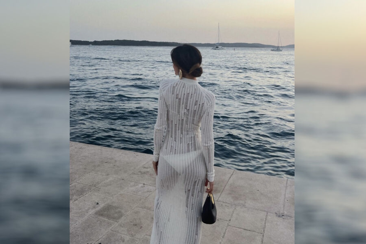 Исполнительница хитов блеснула на камеру в белоснежном наряде с прозрачным оформлением.