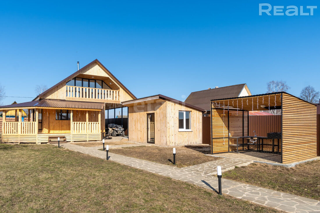 На продажу на Realt выставили интересный объект. Дом из бруса стоит на первой береговой линии Березины. Внутри он отделан деревом, есть мебель и техника. На участке все сделано для хорошего отдыха, отдельно стоит и баня. Посмотрите, как выглядит дом и сколько за него просят. Дом построен в деревне Красный Берег в Минской области. Он стоит на первой береговой линии реки Березина. Его возвели в прошлом году в два этажа. Стены дома – профилированный брус из массива древесины хвойных пород. Фасад обшит вентилируемой вагонкой. В оконных проемах установлены энергоэффективные стеклопакеты, на крыше лежит черепица. Общая площадь дома - 95 м². Дом продается со всей мебелью и техникой. На первом этаже разместились кухня-гостиная, совмещенный санузел с душевой кабиной, умывальником и бойлером. На втором мансардном этаже обустроена жилая комната с выходом на балкон площадью 8 квадратных метров. Отапливается дом с помощью электричества и печки-камина. Вода поступает из скважины, канализация - местн