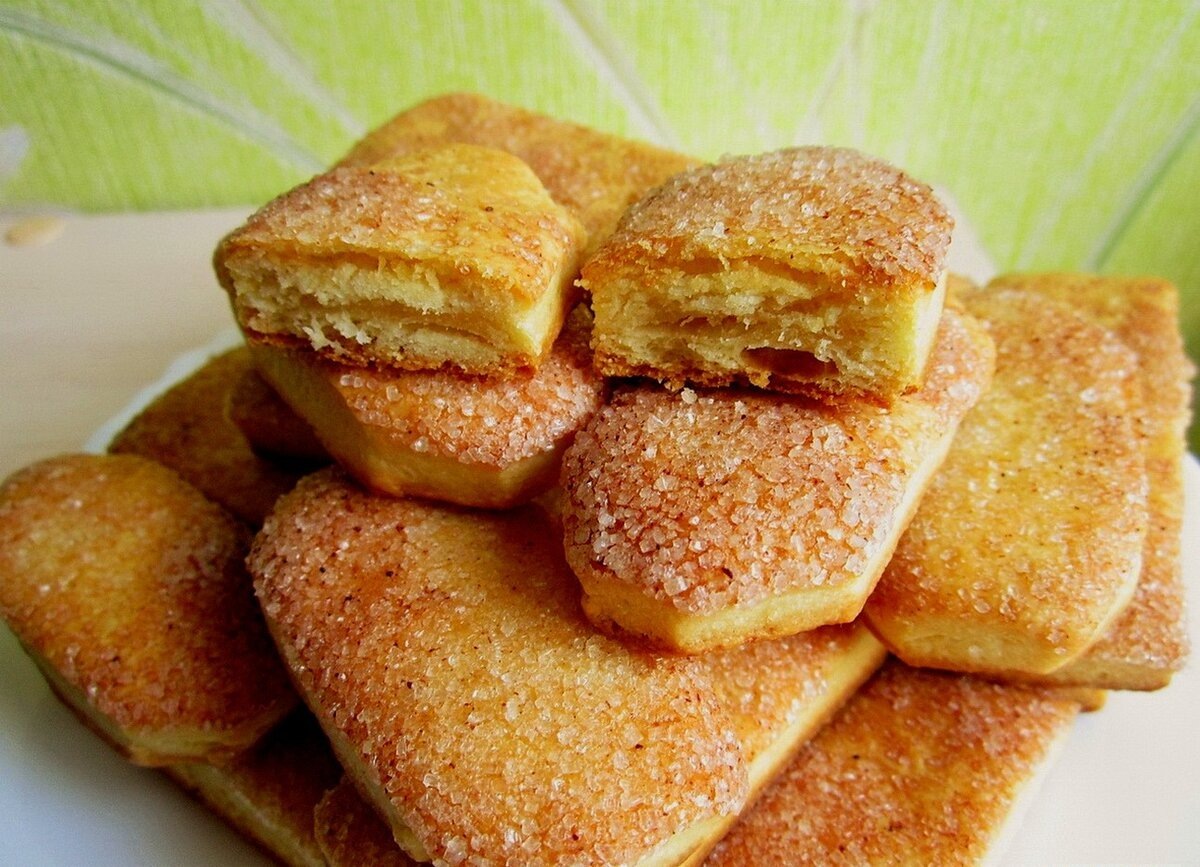 Кәрәк: 300 г ауыл ҡаймағы (йәки 200 г магазин ҡаймағы +100 г аҡ май), 150 г шәкәр, 1 пакетик ванилле шәкәр, 2 йомортҡа, семтем тоҙ, 1 балғалаҡ сода (йәки 1,5 балғалаҡ ҡамыр йомшартҡыс), 450-500 г он.
