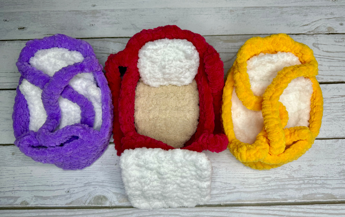 Мастер класс. Люлька маленькая. Кр 5, пряжа велюто 50 гр. Донышко 10*15 1. 9 сбн , 5 пр, 9 сбн, 5 пр. 2. 38 сбн 3. 38 сбн 4. 38 сбн 5. 38 сбн 6. 38 сбн 7. 2 сбн, 28 вп ( пропускаем 7 сбн ),12 сбн, 28 вп ( пропускаем 7 сбн ), 12 сбн 8. 25 сбн по 28 вп, 2 сбн, в 1 п (1 псн,1 ссн, 1 псн), 2 сбн, в 1 п ( 1 псн, 1 ссн, 1 псн), 2 сбн, в 1 п ( 1 псн, 1 ссн, 1 псн), 2 сбн, 25 сбн по 28 вп. В 1 ряду 5 прибавок по центру делаем по узкой части донышка. По бокам можно в середине сделать тоже по 1 прибавке, но тогда учитывайте, что количество петель в вязании изменится. Матрас 1. 2 вп, в первую петлю вяжем 3 псн, 2 впп 2. Пр псн, 1 псн, пр псн, 2 впп 3. Пр псн, 3 псн, пр псн, 2 впп 4. Пр псн, 5 псн, пр псн, 2 впп 5. 9 псн, 2 впп 6. 9 псн, 2 впп 7. 9 псн, 2 впп 8. 9 псн, 2 впп 9. 9 псн, 2 впп 10. Уб псн, 5 псн, уб псн, 2 впп 11. Уб псн, 3 псн, уб псн, 2 впп 12. Уб псн, 1 псн, уб псн, 2 впп 13. Уб.