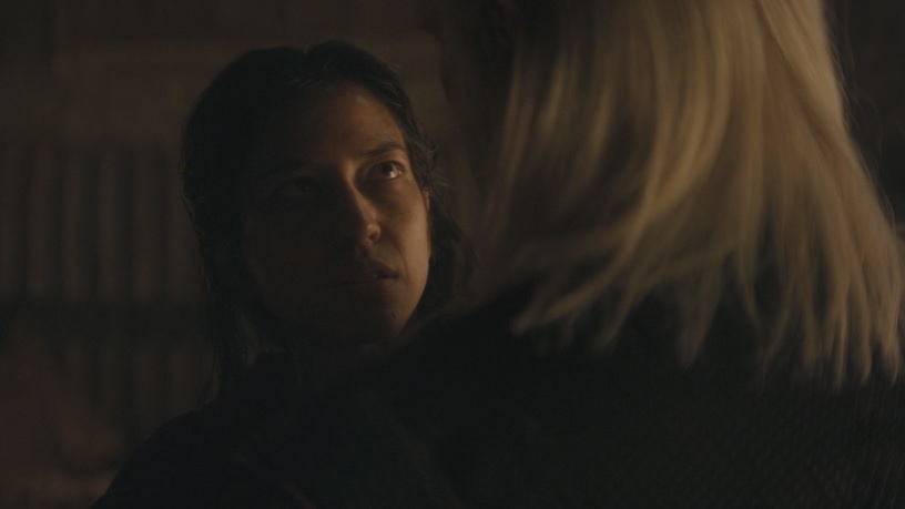 В книге-то там была ещё и Алисента, а охранявшую их фрейлину злодеи задушили. Опять же книжная Хелейна до последнего не сдавалась и в конце концов указала на другого сына, не наследника, чтобы старший уцелел. А в сериале Хелейна: «Вот он, граждане! Прошу вас, приступайте». Ладно хоть девочку сообразила унести.