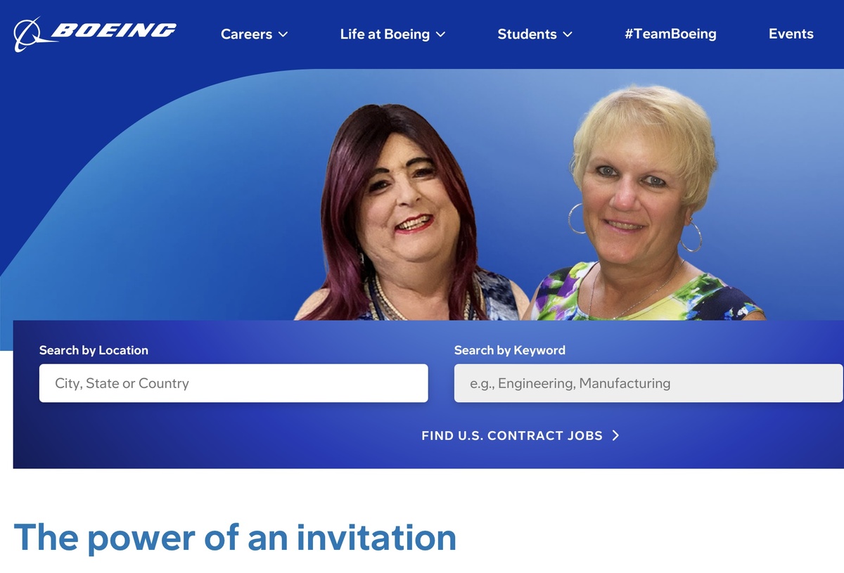 Эта парочка немолодых трансов (Дарси и Сюзан) будет, видимо, подымать реноме компании «Боинг». Дарси (это брюнет слева) признается, что его/ее команда и руководитель поддерживали его/ее во время «перехода» и использовали ресурсы Boeing по гендерному самоутверждению, чтобы помочь сотрудникам и их командам пережить изменения. Когда его/ее неделю не было в офисе, его/ее менеджер провел встречу со своей командой, чтобы объяснить, что происходит. Он/онна сказала, что, когда он/она вернулась, все относились к нему/ней с уважением, и работа продолжалась в обычном режиме, но он/она действительно почувствовала себя желанной гостьей, когда произошел этот простой акт вовлечения и ее пригласили присоединиться к женщинам в ее организации на мероприятие, посвященное Месяцу женской истории. Сьюзан Моррис (это который справа, блондин) сотрудник F-15 в Сент-Луисе, видит свою идентичность иначе, чем его визави Дарси. В конце концов, как и цисгендерные женщины, так и те, кто перешел на другую сторону, не
