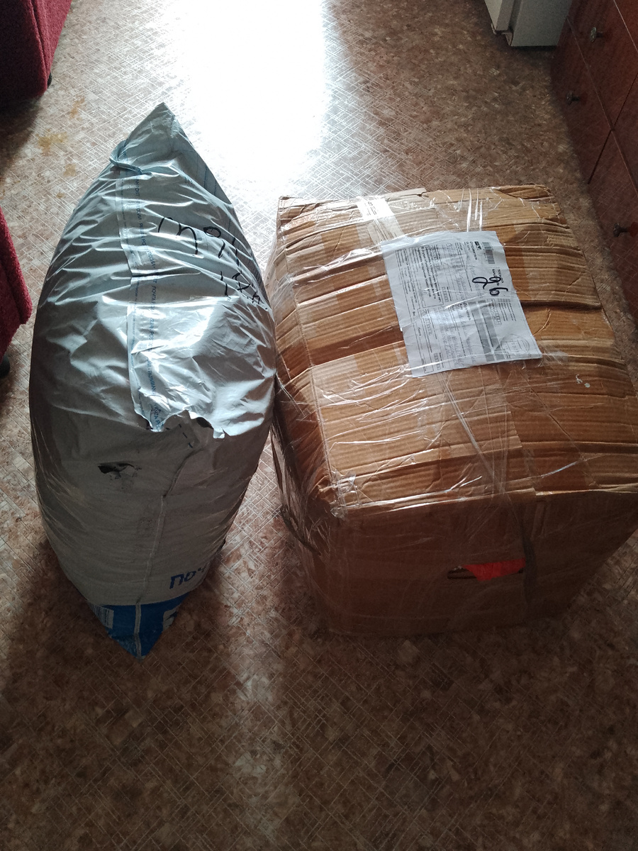 Поехала на почту, пришла моя краснодарская посылка, вернее их две. Вот я, святая наивность, верила, что там всего 7 кг. Оказалось, 7 кг это одна упаковка, а вторая 19 кг. 26 кг одежды. Куда?
