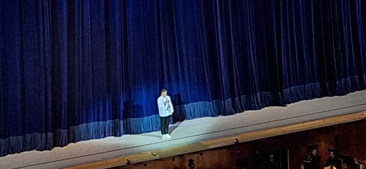 Так что, увидев в афише Кремлёвского дворца анонс выпускного вечера Академии, сразу решили сходить на него. Не скрою, была надежда увидеть и самого Николая Максимовича. Билеты на вечер ох какие недешёвые. На балконе самый дешёвый - 1800 руб., самый дорогой в партере у сцены - 20 тыс. Пришлось брать балкон, но в этом дворце балкон очень удобный, хотя лиц, понятное дело, не увидишь без бинокля. Поэтому и фотографии, конечно, получились не самые лучшие.
