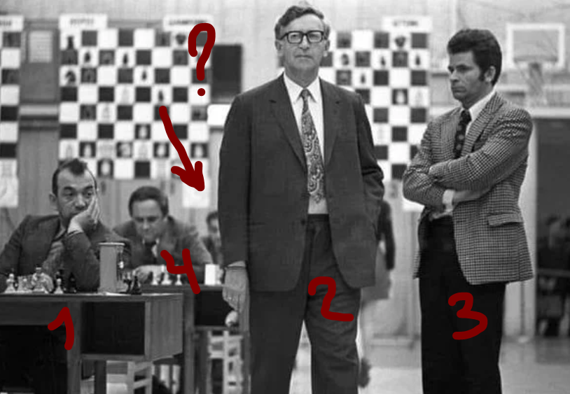 Вот такая сегодня загадка, дорогие дамы и господа - нам надо не только решить 3 задачи (ну хотя бы 2), но и угадать всех шахматистов на фотографии с одного из турниров. Кстати, в процессе поиска можете оставить для всех сам турнир и год проведения. Смыслова обычно узнают 95% мало-мальски грамотных шахматистов, номера 3 и 4 - тоже сразу говорят, с четвертым сомневаются, а вот пятый (стрелкой помечен) не может узнать никто. Будьте первым! Про подборку - решаем 3 задачи: _________________👇👇👇 Кто решил, тот молодец! Расскажите об этом в комментариях