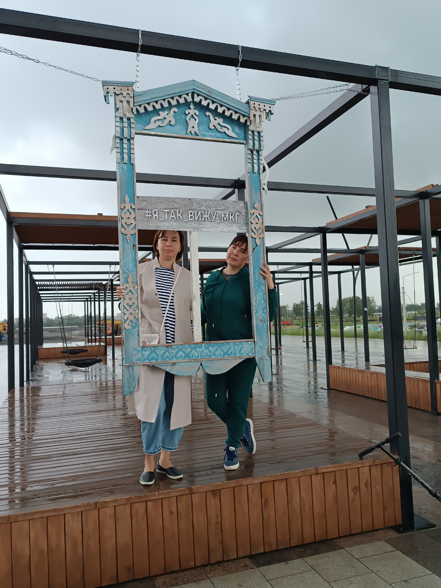Поначалу мы долго гуляли, дети играли на закрытой территории, а мы с сестрой и Ильясом ходили по дорожкам. Часа два мы точно ходили, а потом начался дождь. Поначалу собрались свинцовые, очень страшные тучи. Видя картину маслом, мы побежали в сторону фудкорта, чтобы укрыться от надвигающейся стихии. Дождя ещё особо не было, но поднялся сырой ветер, от него одежда на мне вся увлажнилась. Потом стали падать крупные капли.