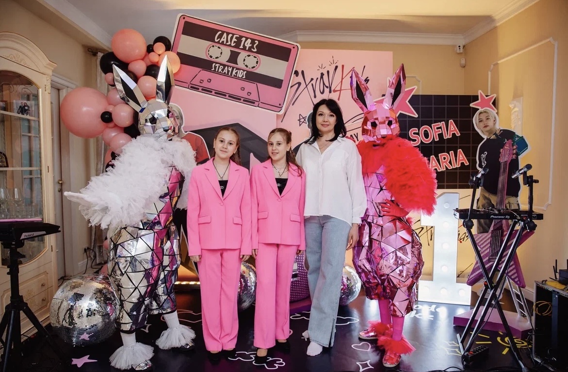 Бывают задачи со звездочкой. А бывают с целым северным сиянием! Что нам дано: Именинников не 1, а целых два! Мария и София – две очаровательные двойняшки. Они пребывают в прекрасном подростковом возрасте. И обожают K-POP и группу «Stray Kids». Мы устроили мозговой штурм в офисе МореШоу на тему «Чем бы таким удивить девчонок?!». Группа уже не успеет прилететь из Кореи. Двойников днем с огнем не сыщешь. Корейская еда… Караоке… Придумали! А давайте установим айдолов в полный рост?! Чтоб как живые, ну?! Супер! Принято единогласно! Сохраняйте идею - глазом не успеете моргнуть, как ваши дети тоже дорастут до K-POР. Потом попомните наши слова. Чем запомнился этот умопомрачительный праздник? Мы пригласили настоящего DJ, который весь вечер создавал на площадке зажигательное танцевальное настроение при помощи своих пластинок. Он мастерски миксовал музыку популярной корейской группы “Stray Kids” с другими хитами. Гости пускались в пляс с порога и не могли остановиться до самого