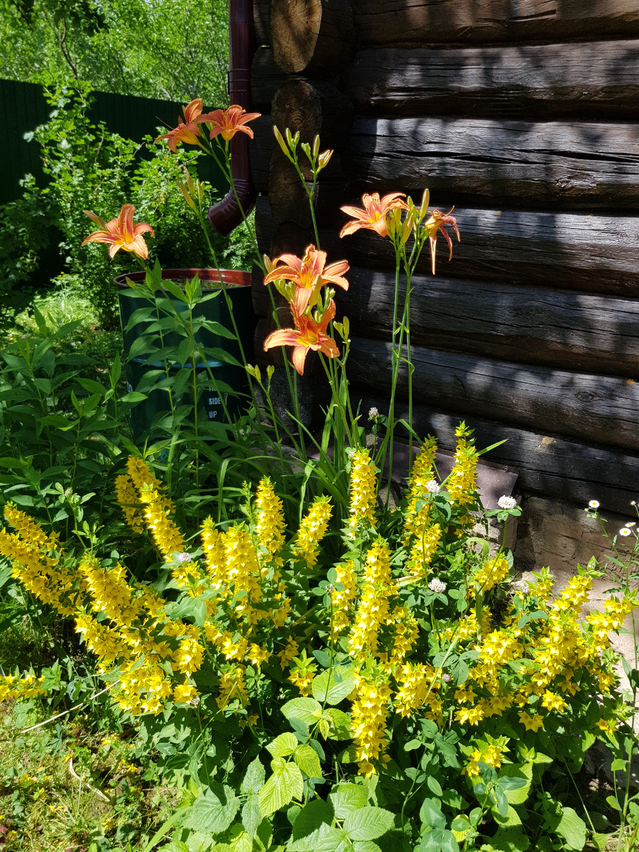 Здравствуйте, дорогие друзья! Наша дачная жизнь продолжается. Уже июнь на исходе. Что - то отцвело, что - то только начинает цвести. Лилейник + вербейник и получился красивый дуэт около дома. А брёвна уже точит какой - то жук. Обрабатываем через год пинотексом, но всё - равно заводятся всякие деревогрызы. Наконец - то начинают распускаться лилии. И прекрасные розы! Ромашковая полянка образовалась сама собой. А за ромашкой раскинулась волжанка. Котам привольно на природе. Это не то, что в городской квартире сидеть. Весь день на улице, домой не загонишь. Каждую травинку обнюхают. А какую надо поедят. На выходные приезжала младшая дочь с мужем. В субботу у нас были шашлыки, я вам уже показывала. А в воскресенье нажарила окунёчков. Дочь привезла. Таких крошечных, но ничего, вкусные всё - равно получились. Вот такие небольшие совсем, в пол - ладони. Выходные пролетели быстро. Молодёжь отдохнула. Дочь что - то вышивала. Зять клубнику собирал. Муж тоже завис в клубнике. Выходные проле