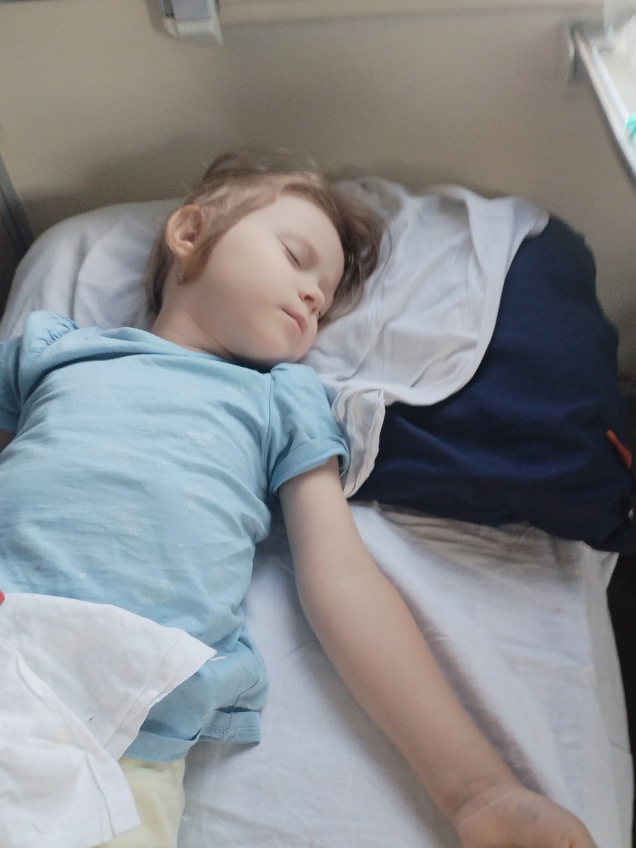 Проснулась рано: в 4 утра вышла детвора из вагона, знатно нашумев. Проводница к кофе подарила свои сливки. Да и вообще душевной женщиной оказалась: в первой плацкарте не было ступеньки для залезания на второй этаж, стремянку предлагала. Оставила ей по qr-коду положительный отзыв и 100 рублей чаевых :), учитывая ее нелегкий труд, с детьми-засранцами. Особенности вакуумных туалетов - твердые отходы жизнедеятельности надо размалывать - иначе засор (простите за подробности). Зайка спит. Заказала несколько дней назад такси Максим, от крымского такси отказалась, хоть в прошлый раз они себя хорошо проявили. Но разница ощутима - почти тыща рублей. Доехали хорошо. Ожидаемо пошли на пляж сразу же после заселения. Море чистое, вода средней температуры. Люба отказалась даже ноги мочить. Вот блин. Пока впечатления неплохие, много недорогих столовых, но... В Евпатории мне больше понравилось. Люба бегает, веселится. Гипермаркет. Вдалеке - Генуэзская крепость. На длинной набережной есть де
