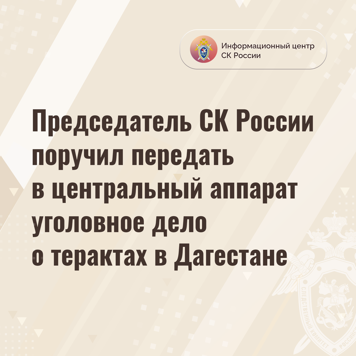 Председатель СК России поручил передать в центральный аппарат уголовное дело о терактах в Дагестане