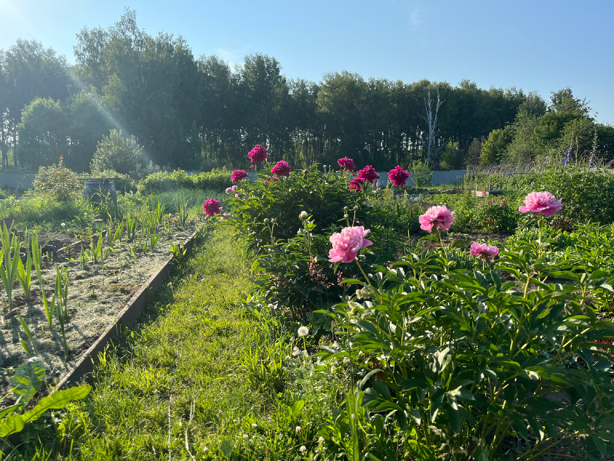 Пионы из-за дождей сильно вытянулись, кусты выше метра. Но сами цветы чуть меньше, чем обычно. Жара, правда, не дала им долго красоваться на клумбе. И на срезку получился только один букет.