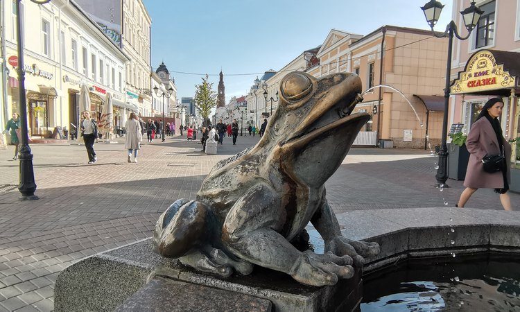 Практически в каждом туристическом городе на темной бронзовой поверхности скульптур можно заметить сияющие «проплешины». Это следы рук тысяч туристов, которые трут эти места по наводке экскурсоводов, ссылающихся на местные приметы. Я прогулялся по оживленным туристическим маршрутам и посмотрел, какие места на памятниках стерты чуть ли не до дыр. Улица Баумана богата малыми архитектурными формами. Самая популярная скульптура — символ города Зилант, расположенный над входом на станцию метро «Кремлевская». Несмотря на это, потертостей на нем обнаружить не удалось. Секрет прост: он изготовлен из цинка и регулярно подкрашивается. Другой символ Казани — толстый вальяжный кот Албарыс — также покрыт краской, но туристы стерли ее своими руками. Если раньше коту терли пузо, то сейчас переключились на хвост. Странный выбор, ведь согласно придуманной примете, потерев животик, можно было «приманить» достаток в семью. У лягушек на фонтане трут нос и глаза. Почему? Непонятно. Возможно причина в практ