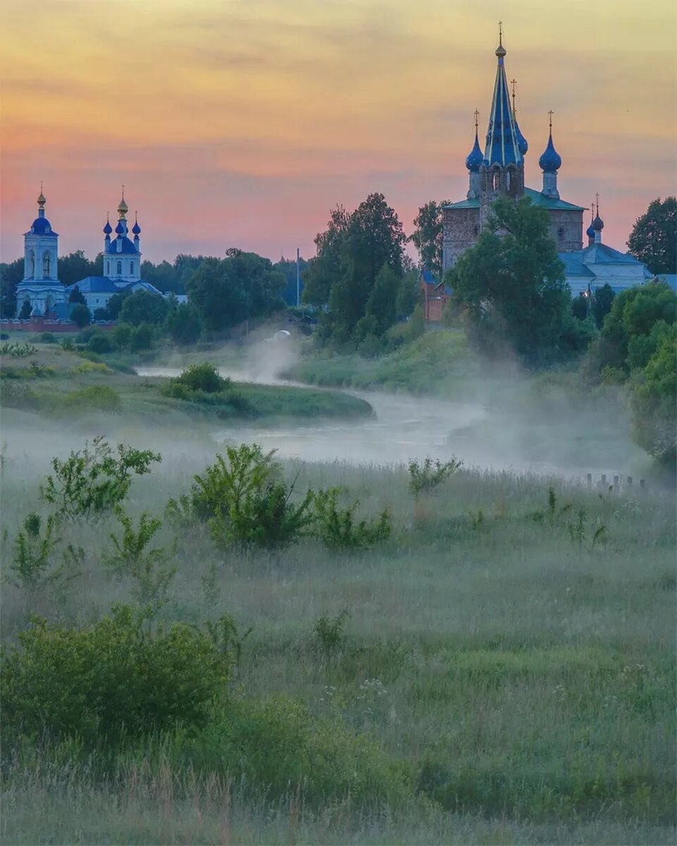 Иногда предрассветные состояния смотрятся более выигрышно, нежели пейзажи после восхода солнца. С первыми солнечными лучами не очень густой туман как правило мгновенно исчезает, освещение становится жестким, а небо теряет свои краски. Да, и контровый свет на открытой местности иногда становится проблемой. Поэтому я стараюсь приехать на место съемки заранее и застать утренние сумерки. Сегодня показываю несколько кадров из живописного села Дунилово ивановской области.