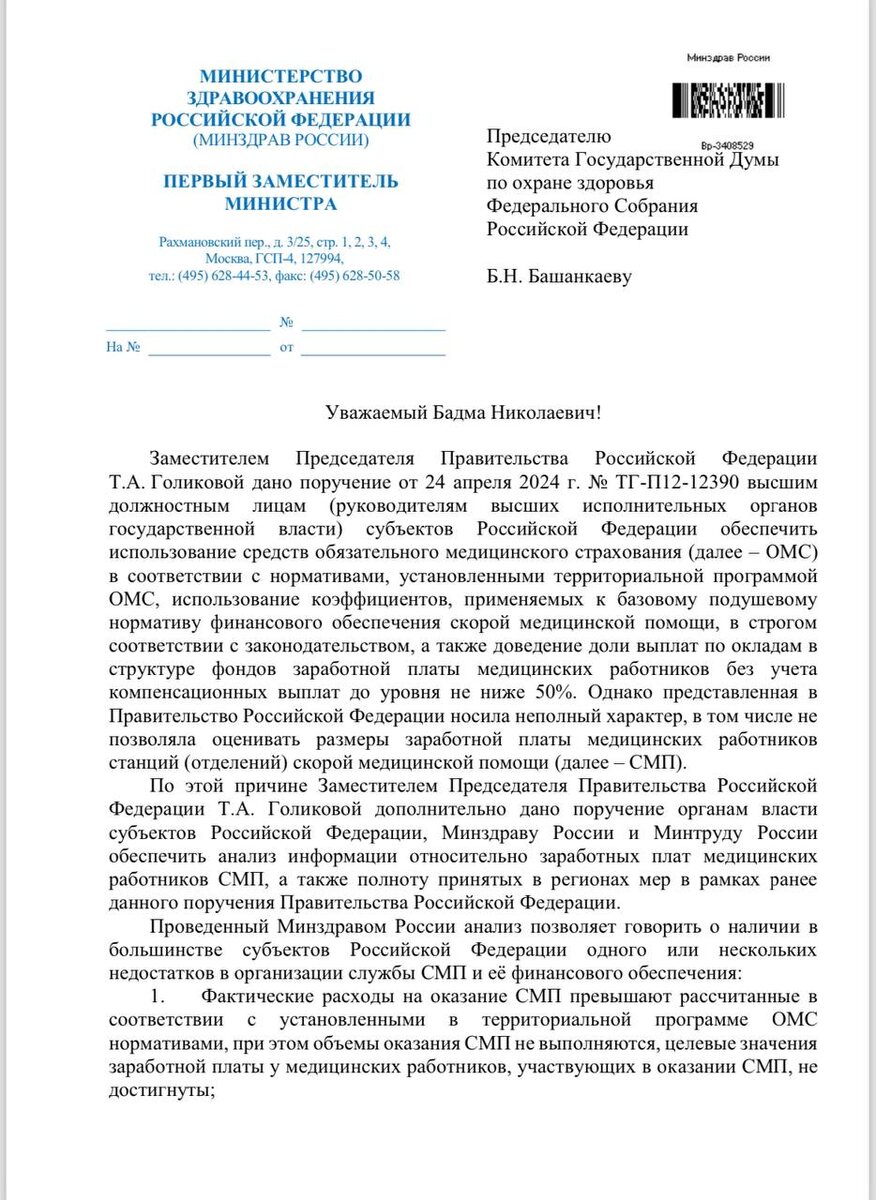 В мае я писал про ответ депутату А. Куринному по поводу ССВ в отношении работников скорой помощи. Еще одна публикация из его телеграмм – канала. Ответ В.А. Зеленского Б.Н. Башанкаеву МОЙ КОММЕНТАРИЙ 1. Несмотря на цифровизацию здравоохранения не во всех регионах информация о заработных платах медицинских работников скорой помощи является общедоступной для своевременного представления в Правительство РФ. Почему? Надо увеличивать штаты региональных минздравов, МИАЦ? 2. Недостатки в организации службы СП и её финансового обеспечения - сфера ответственности регионов. Но Порядок оказания скорой, в том числе скорой специализированной, медицинской помощи сформирован с федерального уровня приказом Минздрава России от 20.06.2013 N 388н. Данный приказ безгрешен по содержанию и не способствует возникновению недостатков при его реализации на местах? 3. Децентрализация системы оплаты труда медиков БУЗ пошла с федерального уровня (отмена ЕТС). Об этом В.А. Зеленский не забыл? 4. В отношении пункт