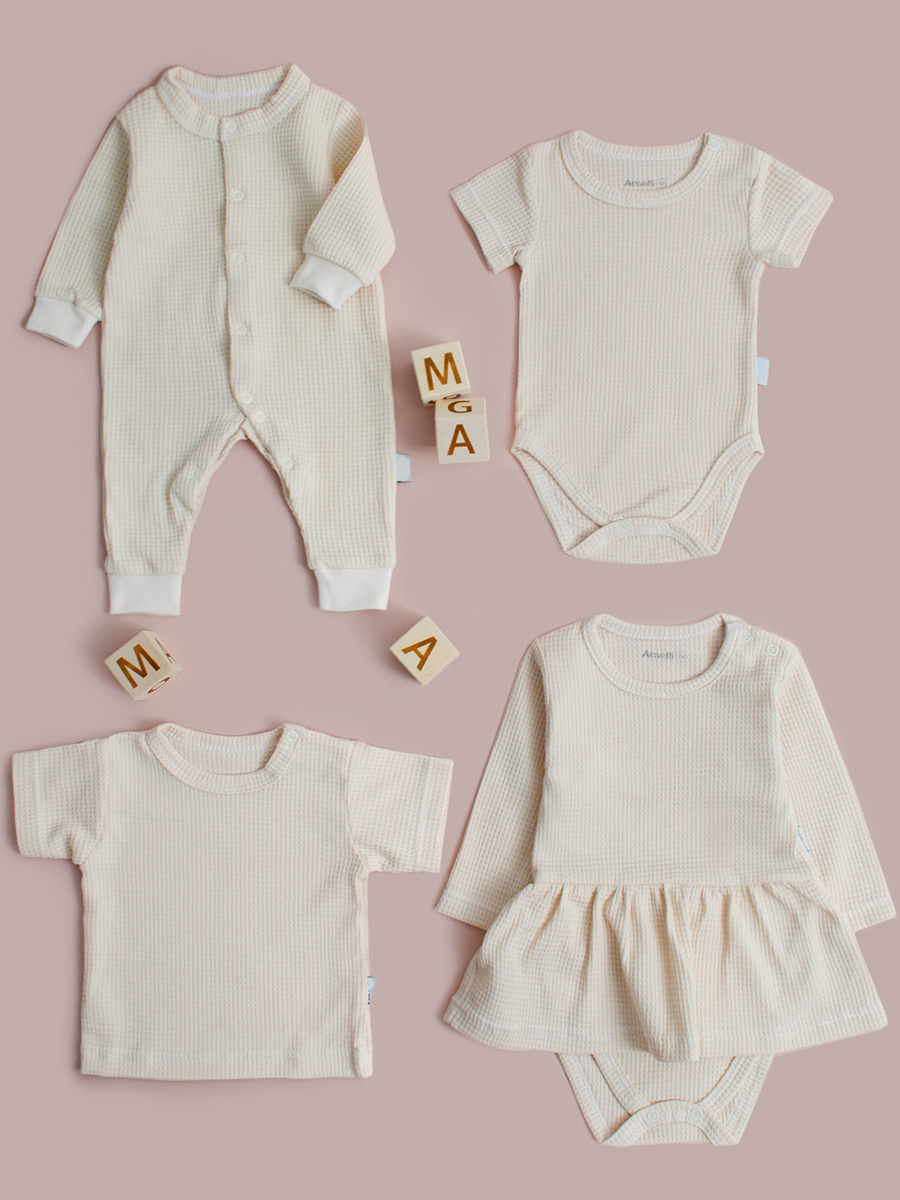 Если вы владелец магазина детской одежды, то поиск качественных, модных нарядов для новорожденных - это настоящая головная боль для вас. Ведь нужно найти хороших производителей, надежных поставщиков, да и в целом подобрать интересный и качественный ассортимент! Хотим рассказать вам о нескольких коллекциях, которые вы найдете на нашем сайте opt-baby.ru. Она так называется не потому, что её можно съесть, а потому, что выполнена из текстурного трикотажа, который внешне напоминают вкусную вафлю. При этом материал очень нежный и приятный к телу. А расцветки очень любят инста-мамочки: бежевый, какао, кремовый, нежный персик. Это очень милая коллекция с забавными "рожицами" зверят. Немного смягченные, припыленные расцветки востребованы сегодня среди мам, которые хотят одеть своего ребенка "в тренде". Необычная ткань с перфорацией - отличный вариант для теплой погоды. Кожа ребенка дышит и не потеет. А еще одежду можно носить в качестве поддёвы в прохладное время года. Цвета выбеленные: желтый,