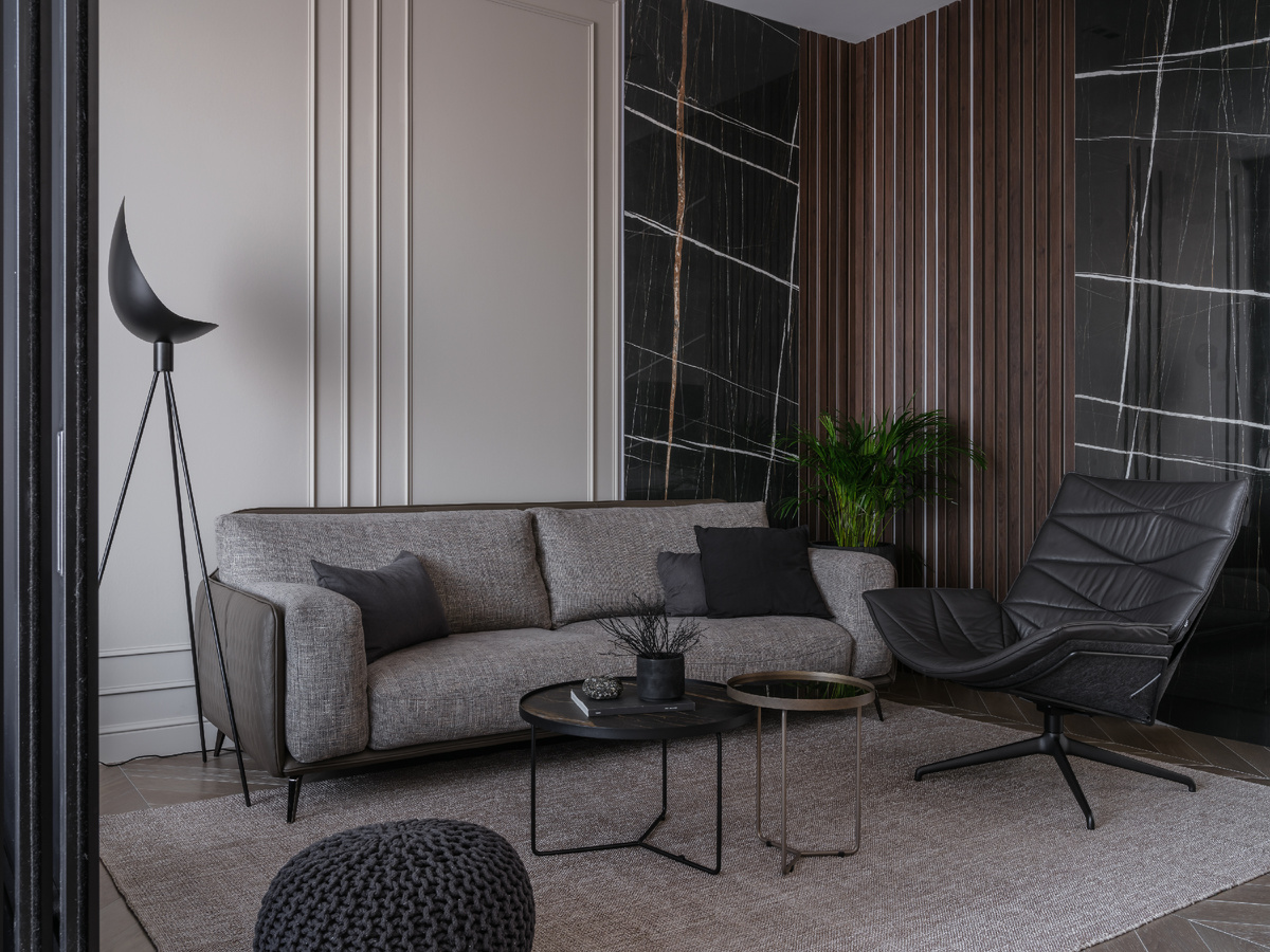 Скандинавский минимализм в премиальном сегменте — это новый проект студии ALEART DESIGN в ЖК «Садовые кварталы». Площадь квартиры небольшая: в ней есть гостиная без окна (сбоку от нее за стеклянной перегородкой — спальня с балконом), а также отдельная кухня.