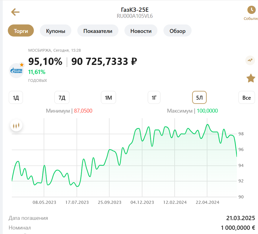 ГазКЗ-25Е, ГАЗПРОМ КАПИТАЛ-ЗО25-1-Е , ISIN код: RU000A105VL6, вместо еврооблигации XS0906949523.
