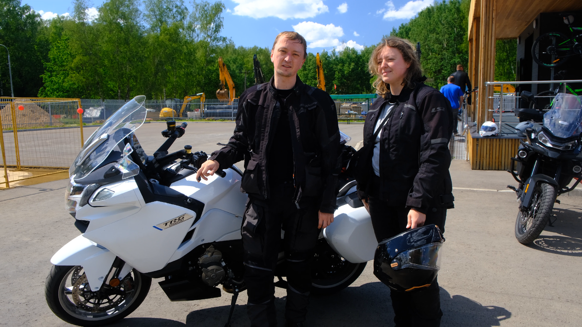 Все мотоциклы CFMOTO тут - CFMOTO-MOTO.RU Отзыв о СFMOTO 1250TR-G - ВИКТОР И ЮЛИЯ. Интересный, комфортный мотоцикл. Хорошая ветрозащита и нормально тянет, нормально едет. Поворачивает тоже достаточно хорошо. То есть нет вопроса к управляемости, несмотря на его объем и массу. Двойку сзади я вообще не чувствовал. Ну, стандарт для такого типа мотоцикла. Мне понравилось! Юля считает, что здесь удобнее, чем на 1250RT BMW сидеть сзади за счет того, что меньше расстояние сзади и удобнее держаться, то есть длина чуть меньше, соответственно, удобнее держаться за водителя Ну, так вот сейчас прокатились, да, прикольно, удобно, комфортно. О СFMOTO 700MT - МИХАИЛ. Офигенно классный мотор, очень эластичный, тянет с любой передачи на любых оборотах. Был приятно удивлен тем, что он спокойно едет на высоких оборотах, то есть 6-8 тысяч и выше. Не ожидал от того, что она [семисотка] способна ехать быстро, но она способна. И очень круто отрабатывают подвески. Пробовал экстренное торможение в поворотах,