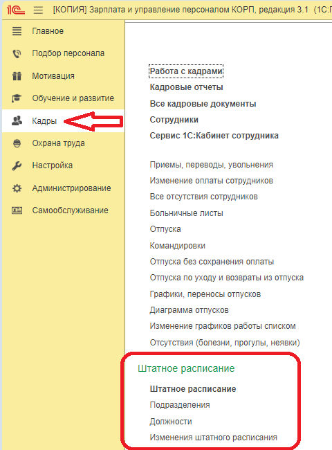 Где в 1С находится штатное расписание