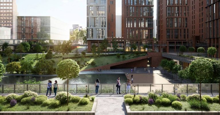 Новые водоемы в Москве появляются не так часто (хотя застройщики любят рисовать их в своих проектах). А вот новый пруд в Хамовниках уже совсем скоро станет реальностью — его откроют через несколько месяцев. Водоем с зоной отдыха появится в составе нового ЖК, расположенного прямо напротив Усачевского рынка. Главный архитектор Москвы Сергей Кузнецов говорит, что это место станет «центром притяжения для всех жителей района». То есть попасть туда сможет любой желающий (и вряд ли на входе будут проверять прописку, чтобы была именно в Хамовниках). «В парке можно будет расслабиться в тишине и приятно провести время на деревянной террасе у водной глади. Для любителей здорового образа жизни создана беговая дорожка с резиновым покрытием. Вечером и в ночное время на территории будет включаться ландшафтное освещение», — говорит Кузнецов. На берегу пруда высадят 83 дерева — среди них березы, рябины, липы, клены, ивы и пихты. А еще обещают больше 1 тыс. кустарников, цветники и газоны — действительно
