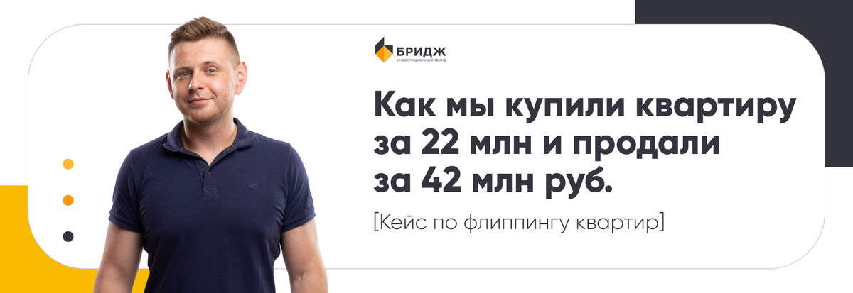 - На флиппинге можно заработать и другим способом - инвестируя и получая стабильный пассивный доход. Для этого потребуется компания-подрядчик, которая все хлопоты возьмет на себя, а вам останется только получать доходность. Например, Фонд Бридж. У нас на флиппинге инвестор может получить доход 18-20% годовых