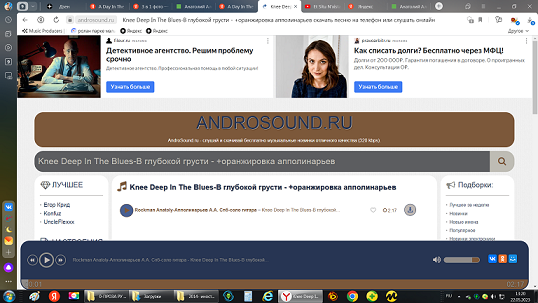 Knee Deep In The Blues-В глубокой грусти -rockman Anatoly или апполинарьев -введите в поисковую строку яндекса Я услышал в детстве эту песенку в исполнении ТОММИ СТИЛА англия- там мне понравился свист Для создание своего варианта пришлось научить мою РХ3 свистеть вместо введенного в нее звука гитары и с помощью проги Аудисити я сумел соединить все дорожки со всеми инструментами И вместо баса песни играл с человеческим голосом гитарой все вместе неплохо получилось ,но все попытки выложить в ютубе приводили к хамству их распорядителей админов Выражаясь по русски этим ВРАГАМ РОССИИ плевать на ваши щепетильные эмоции памяти детства Вы получили 2 замечания чирканули мне плагиат вы используете чужие авторские права а песенка аж 1961 года ну достали эти правоведы Как грабить нашу страну 390 000 000 000 долларов –это можно, а песню записанную на всех инструментах самому выложить нельзя !!Враги РОССИИ англоговорящие американцы у которых в конституции страны наша РОССИЯ вписана как главный враг