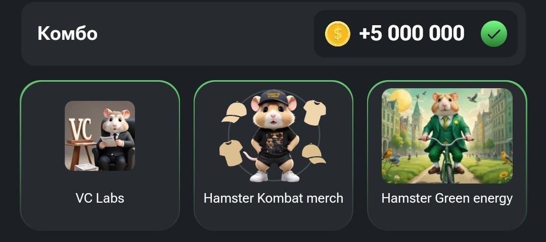 Комбо карты в Hamster Kombat. Какие карты Хамстер Комбат сегодня (Хомяк). 24-25 июня 2024