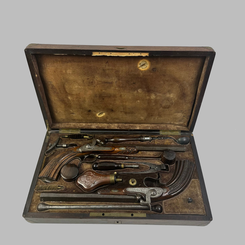 Пистолеты капсюльные дуэльные, в пенале с принадлежностями. Франция, 1850 год