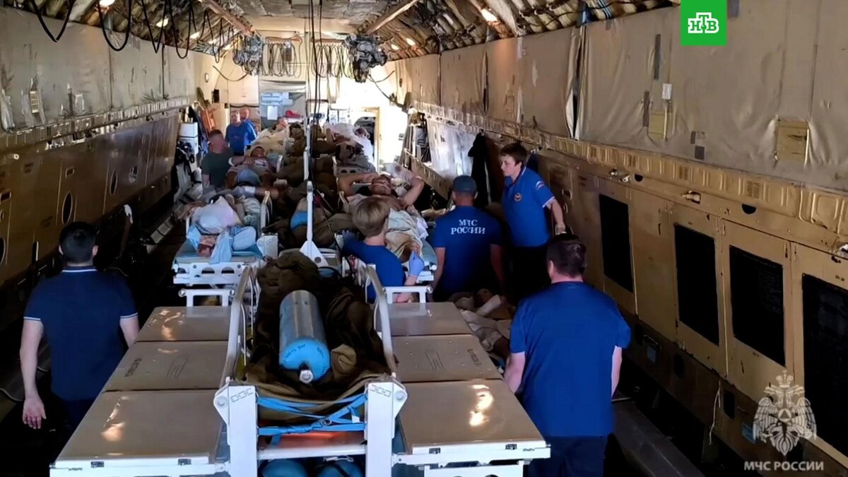 [ Смотреть видео на сайте НТВ ] Из Севастополя в Москву вылетел транспортный самолет Ил-76 МЧС России. Он доставит в столицу пострадавших при вчерашней атаке ВСУ. Как сообщили в МЧС, на борту спецрейса находятся 22 человека, в том числе 12 детей. Самолет оснащен современным оборудованием и специальными медицинскими модулями, аппаратом искусственного дыхания и кардиомониторами. Людей в полете сопровождают врачи отряда «Центроспас», психологи Центра экстренной психологической помощи и специалисты Минздрава. Днем 23 июня ВСУ нанесли удар по Севастополю тактическими ракетами ATACMS. Погибли 4 человека, более 150 пострадали. [ Смотреть видео на сайте НТВ ]