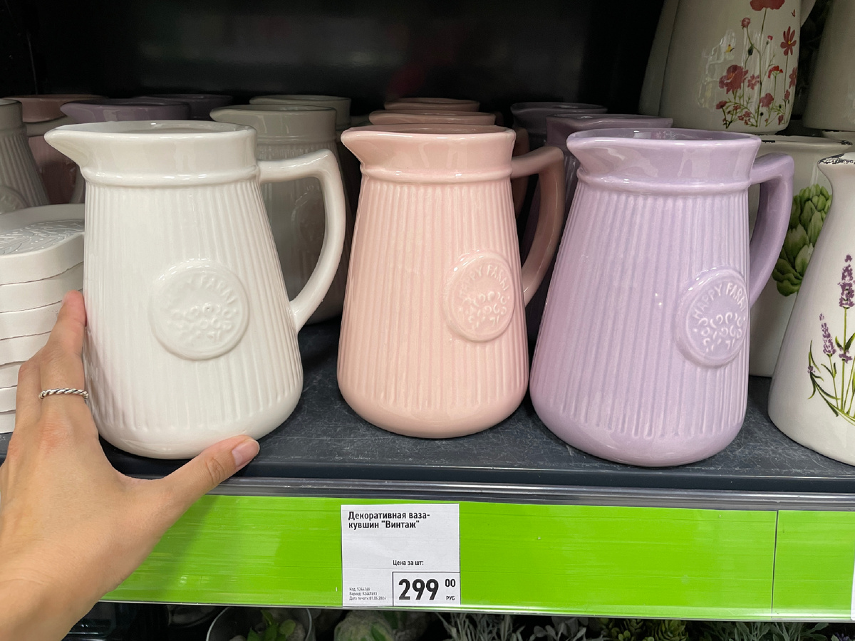Я как всегда про стильный декор для дома, а не просто обзор всего подряд 😄 Смотрим! Милейшие вазы-кувшины летних цветов 💜 Ничего лишнего, вычурного и колхозного. Я влюбилась в эту хамсу, но оказывается, это не просто подставка, а подставка для благовоний 😯 видите дырочку внизу? Цена просто прелесть, но это необработанный гипс, чуть пачкается и не слишком долговечный. Рядом с хамсой стоял и кит - абалденно реалистичный! Мне кажется, можно купить, чтобы просто пораскрашивать 😄 Выполнен качественно, без грубых огрехов. Не помню, рассказывала или нет, но я в восторге от этого «храма»-подсвечника, их раньше продавали по 700-1000 рублей на вайлдберриз, а теперь можно купить за 200 в Фиксе. Прелесть же! И рядом с храмом - подсвечник-лотос, тоже нравится 🫶 Еще один необычный «двойной» подсвечник, стекло очень тонкое, поэтому вещь хрупкая, но интересная 😍 листайте карусель фотографий, чтобы посмотреть под другим углом. И цена тоже приятная. Еще наткнулась на вот такой необычный аромадиф