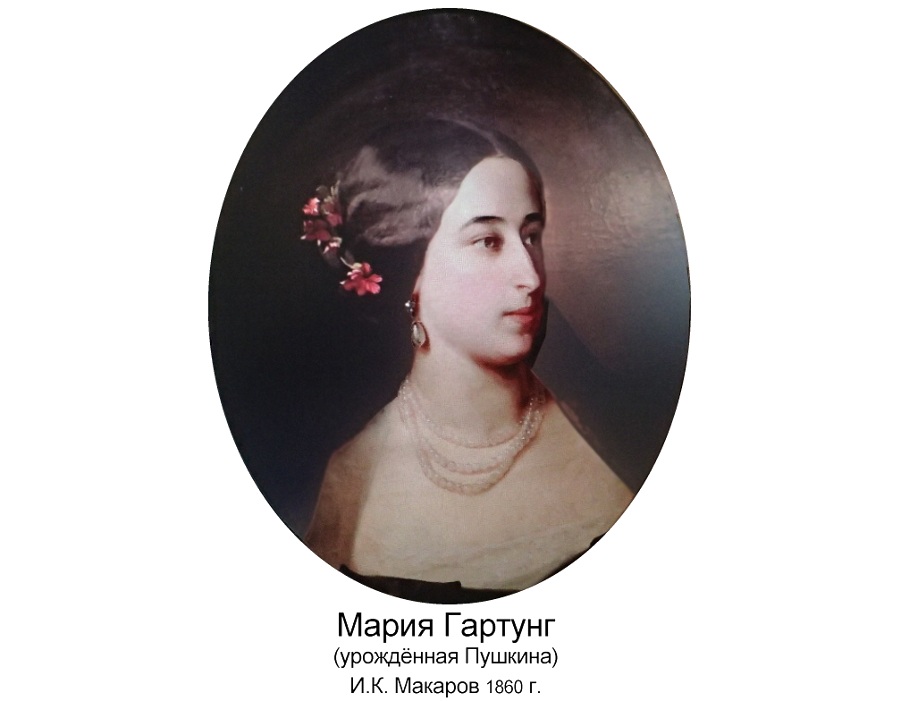 Мария Александровна Гартунг, урождённая Пушкина, покоится на новом Донском кладбище. Редкий день на её могиле не бывает живых цветов...