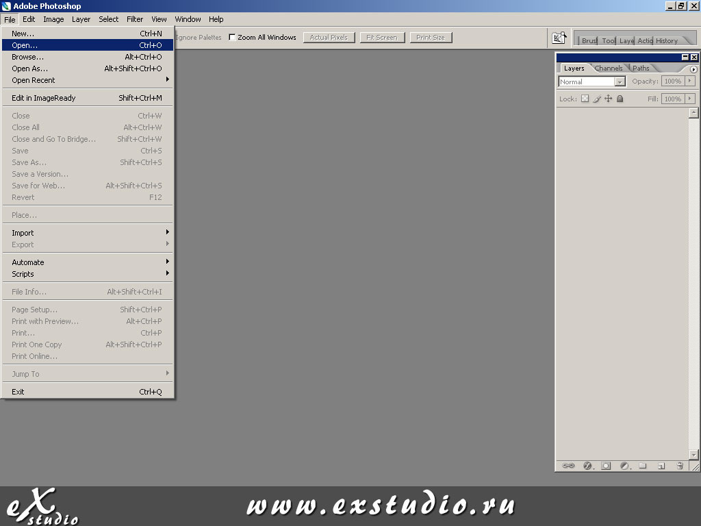 Идем во вкладку: Файл > Открыть (File > Open) и открываем файл с фоновым изображением.