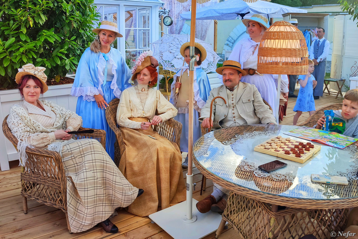 Провели выходные на фестивале "Усадьбы Москвы". Это типа городская дача 150 лет назад. Побывали на обеих площадках: в парке "Кузьминки" и в Коломенском. На следующий день опять поехали в Кузьминки. Полный восторг! Я слышала про фестиваль, но не вникала, когда он и где. Потом случайно увидела фотографии в ФБ. Так ярко, так стильно и живописно. Решила съездить. Выбрали парк "Кузьминки". Дело было в субботу, 22 июня - годовщина начала Великой Отечественной войны и день памяти. Посему не было шумных развлечений. Не пели, не танцевали, концерта и танцев тоже не было, только мастер-классы и игры на природе. Обучали рукоделию, рассказывали, как варить варенье. Из игр всегда доступны шахматы, бадминтон, городки, крокет, петанк. Удивительно, но всегда найдется компания. Через пару часов кажется, что ты реально на даче. Дамы и кавалеры в старинных нарядах. Все такие милые и приветливые. Это прекрасно! На следующий день отправились в парк Коломенское. Гостей встречает Сергей Петрович Басов, хозяи