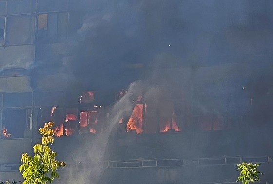 Здание едва проглядывается сквозь дым: тушение горящего института во Фрязино продолжается