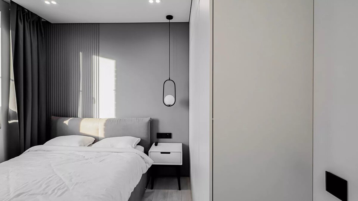 Подбирая мебель и аксессуары, обратите внимание на их удобство и эргономику. Важно, чтобы каждый предмет служил вашим потребностям и не создавал дискомфорта. Уделите внимание качеству материалов и функциональности. Ящики в шкафу или в кровати должны быть на бесшумных доводчиках, а глубина их выдвижения не должна перекрывать проход; распашные фасады возможно лучше заменить на двери-купе, а отдельный столик на подвесную тумбу.