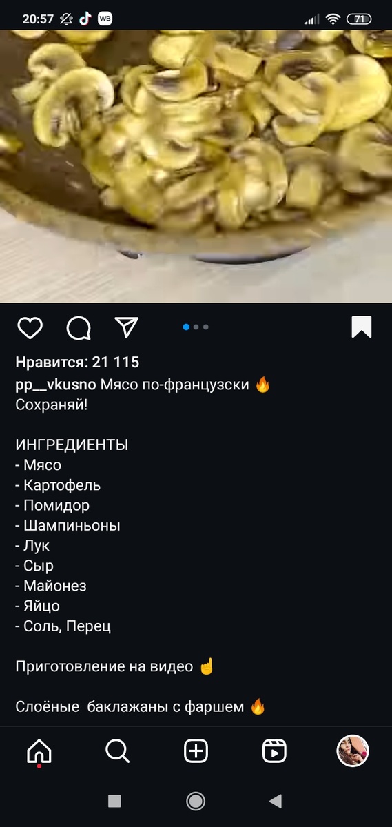Ну просто мясо по-французски мне делать надоело и я решила заморочиться . Нашла сие блюдо в инстеграмме и ролик себе сохранила ну а под роликом добрый человек рецепт и расписал . Я люблю когда рецепт написан , ролики смотреть не люблю . Ну и пошло дело начистила 6 бульбин , отрезала 6 кусочков мяса , достала грибы с морозильника . Благородные не шампиньоны ☺️ , луковица , сыр , майонез и яйцо о да помидоры с морозильника . Ну и соль ,перец ну как без специй . Мясо отбила с двух сторон , пасолила , поперчила и на сковороду на маселко подсолнечное , обжарить с двух сторон Потом идёт картошку нарезать кружочком и выложить кругом на противень и присолить Обжариваем наши грибы И начинаем выкладывать пирамиду На картофель выкладываем мясо и смазываем майонезом + горчица . У меня только майонез . Наверх грибы Лук Помидоры И готовим соус . Яйцо + майонез+сыр . Все перемешать . И заливаем наши стажки мясные . И в духовку на 190° минут на 45 . Получилось вкусно . А вот как Босс