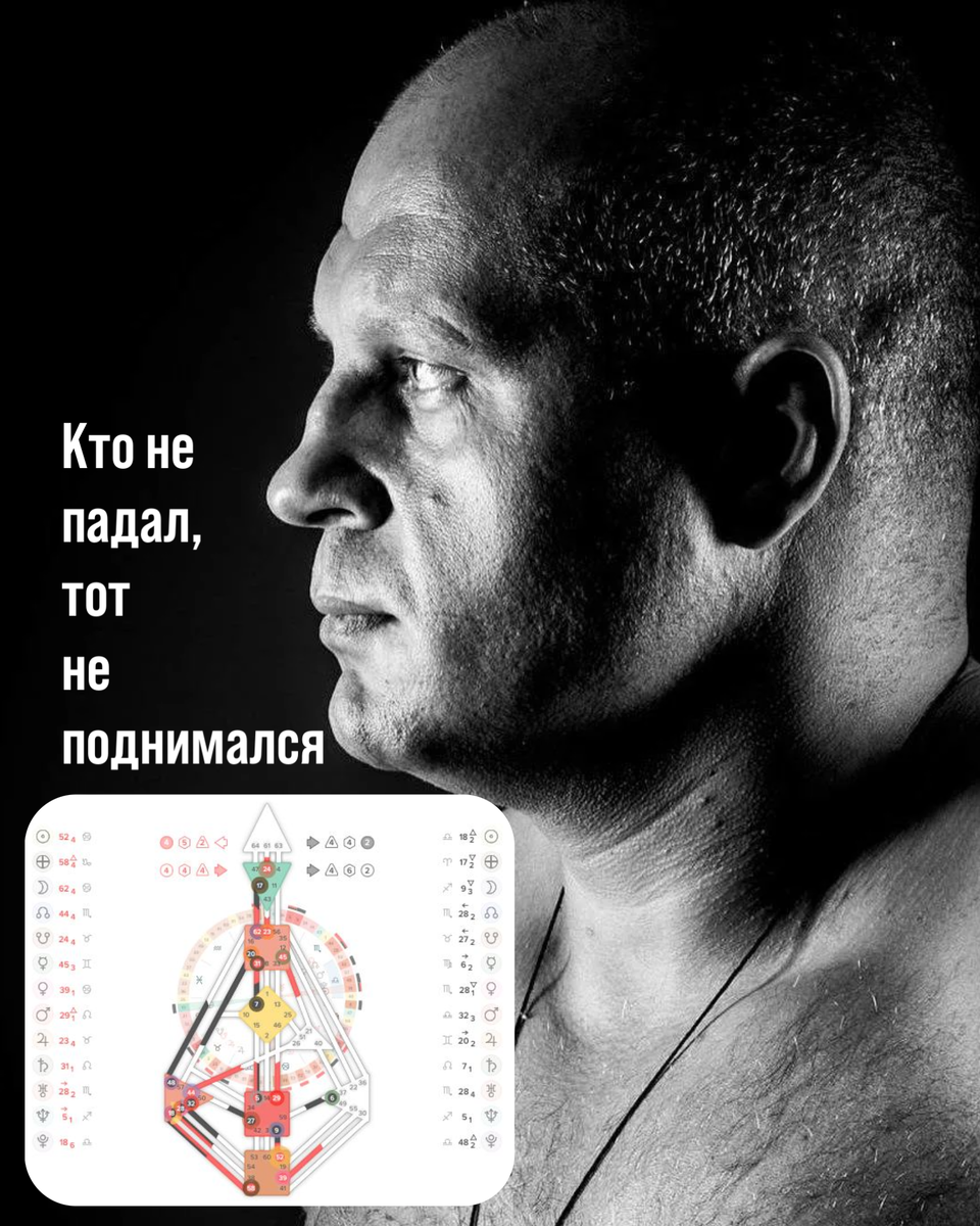 Сам же Фёдор никогда не фокусировался на деньгах и говорил, что в жизни есть много вещей, которые гораздо важнее, чем деньги. Это совершенно корректно для его полностью открытого эго-центра. В целом можно сказать, что Фёдор проживает свою жизнь совершенно корректно и полноценно, в соответствии со своим бодиграфом, пребывая в своём собственном ритме (5 ворота Фиксированных Ритмов в Нептуне).