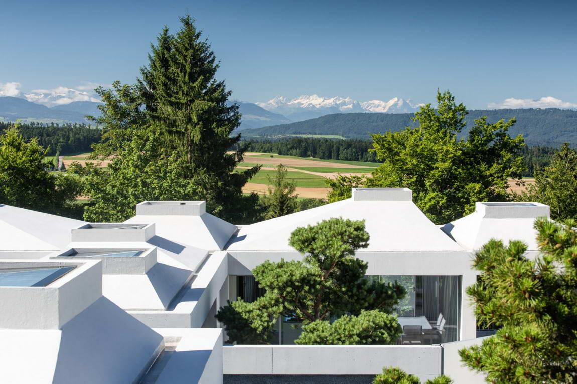 Это - маленькая часть нашей уникальной коллекции, в которой сейчас более 8000 лучших домов со всего мира. В выборе нет никакой закономерности - проекты отобраны случайно. *** На живописном склоне в коммуне Цумикон в Швейцарии построены четыре современные загородные виллы. У всех домов близкий к квадрату план с двумя дворами в каждом. При этом два верхних дома имеют три этажа, а два нижних — два. Здания объединены в единый комплекс общим цокольным этажом, где размещены автостоянки и подсобные помещения. Основной материал — бетон. Особенностью проекта стали шатровые крыши с квадратными зенитными фонарями... 🏡 Заинтересовал проект? Посмотрите больше фотографий и проектную графику здесь: В доме очень много японского — начиная от активного использования бамбука и заканчивая многочисленными проверенными веками решениями: «Engawa» (периферической коридор), «Tsuboniwa» (крошечные дворики), «Хисаси» (свесы крыши), «Tsuufuu» (сквозная вентиляция), а также тщательный подбор растений (вечнозелён