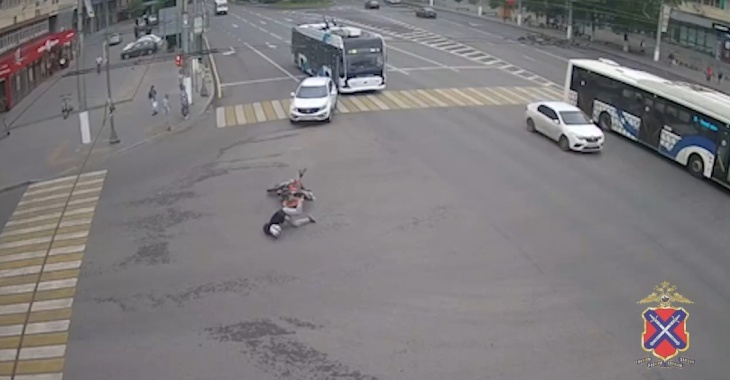 На видео попал улетевший на асфальт с мотоцикла волгоградец