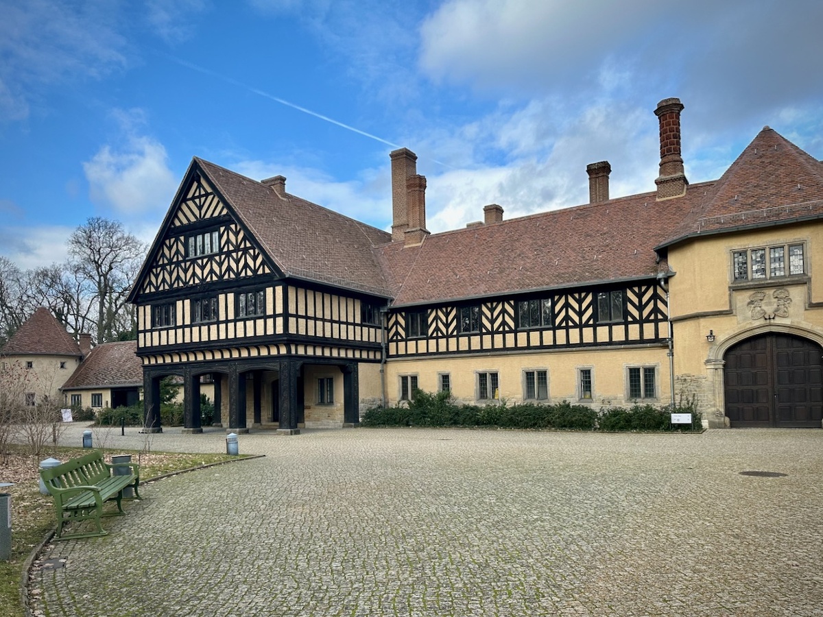 Начну с того, что сам дворец очень необычный. Здание больше похоже на английский загородный дом, чем на дворец императорской семьи. И это не кажется – строил его архитектор Пауль Шульце-Наумбург в популярном в те времена английском деревенском стиле Тюдор. На дворе шёл 1912 год, кронпринц Вильгельм с супругой Цецилией уже жили вместе семь лет, у них было четверо детей (из шести) – самое время обзавестись собственным дворцом. Правда, через год разразилась Первая Мировая война, и строительство пришлось отложить. Только в 1917 году дворец был готов, и в него въехала принцесса Цецилия, в честь которой он был назван Цецелиенхофом. Кронпринц был на фронте, а после отречения отца - кайзера Вильгельма II от престола находился в ссылке на голландском острове Виринген. Только в 1923 году ему разрешили вернуться в Германию, взяв обещание воздерживаться от любых политических действий. Дворец был собственностью государства, но семья кронпринца получила право на пожизненное проживание в нем.