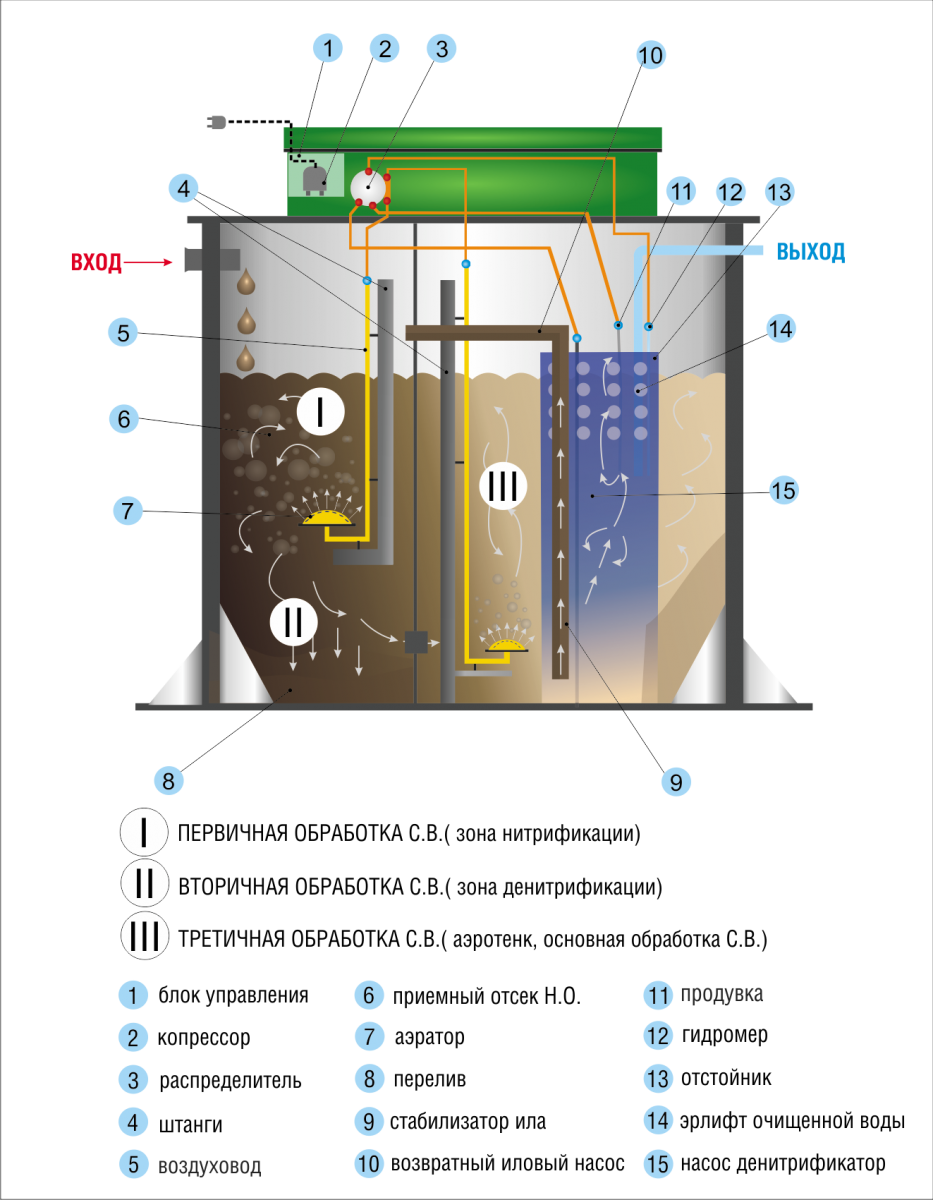 - Регулярно проверяйте уровень загрязнения осадка и не допускайте его переполнения.