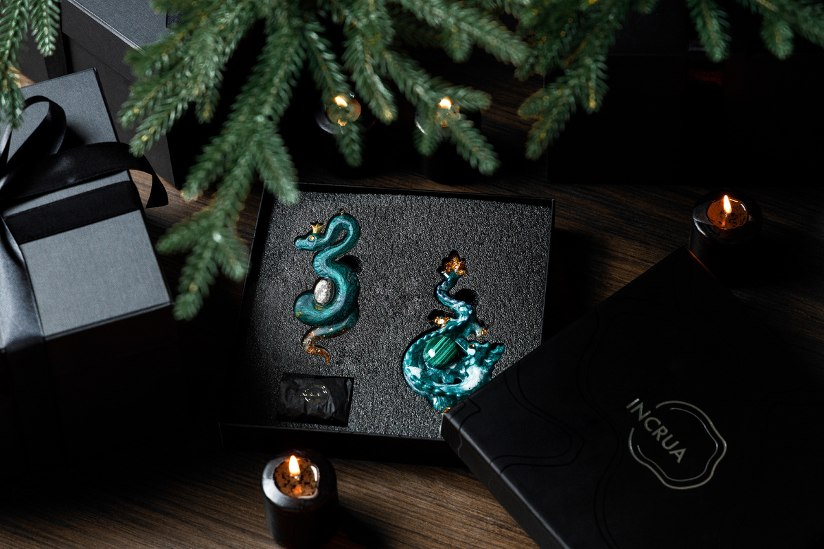 Всем привет! В прошлом году мы рассказывали вам о нашем эксклюзивном ёлочном украшении — зелёном деревянном драконе, символе 2024 года. Теперь мы с радостью представляем новую ёлочную игрушку, символизирующую грядущий 2025 год — Зелёную Древесную Змею. Как и прежде, мы уделили особое внимание качеству и деталям, создавая уникальное украшение ручной работы. Согласно восточной мифологии, Зелёная Древесная Змея символизирует мудрость, исцеление и возрождение. В китайском гороскопе змея олицетворяет проницательность и глубину знаний. Её элегантность и гибкость символизируют способность к трансформации и адаптации, что делает её идеальным талисманом для наступающего года. Теперь давайте расскажем о нашей уникальной ёлочной игрушке "Змея". Мы продолжаем использовать высококачественную ювелирную смолу, которая придаёт игрушке особую изысканность. Глаз змеи выполнен из кристалла Swarovski, добавляя блеск и оживляя её образ. Мы предлагаем два варианта инкрустации. Первый — уральский малахит,