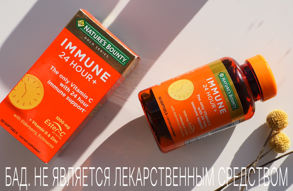 “Эстер С иммун 24 часа+» от профессионального витаминного бренда Nature’s Bounty (Нэйчес Баунти) способствует поддержанию иммунитета и антиоксидантной защите организма. В состав входят девять витаминов, пантотеновая и фолиевая кислота, цинк, биотин, экстракт бузины и эхинацеи.